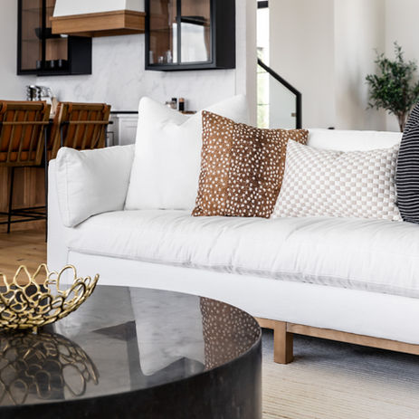 While handling all of the interior design on this project, we also served as the project manager. To create a space to retreat from their busy lives, our client asked for a lake home that was modern, clean, and black-and-white. With stunning views like this, filling the walls with art wasn't necessary! Warm wood tones, wood accents, and cognac leathers act as a third neutral to the black-and-white color palette.